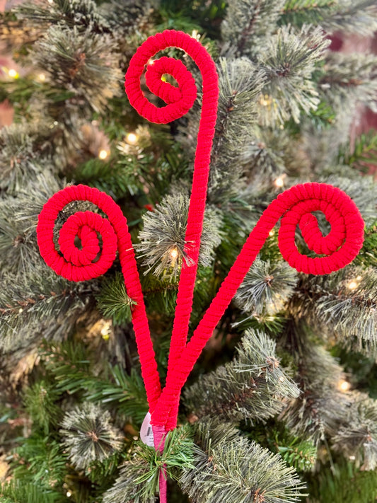 24 Inch Red Chenille Curly Spray