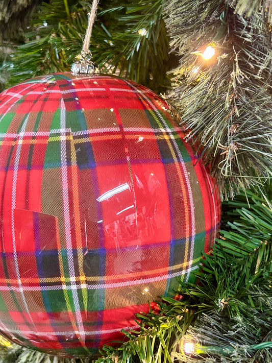 6 Inch Diamond Plaid Velvet Ball Ornament