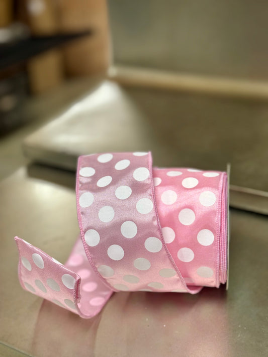 2.5 Inch By 10 Yard Pink And White Large Polka Dot Ribbon