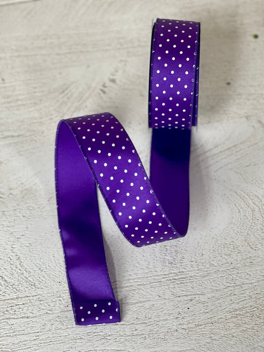 1.5 Inch By 10 Yard Purple With White Microdots Ribbon