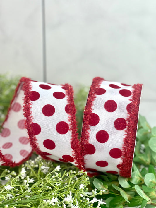 2.5 Inch By 10 Yard Red Velvet Polka Dots Tinsel Drift Ribbon