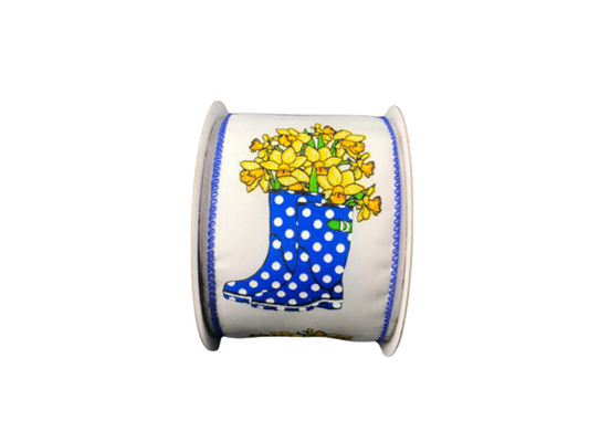 2.5 Inch Blue Rainboot And Daffodil Ribbon