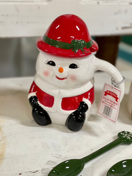 Mr. Christmas Set Of Two Nostalgic Snowman Mugs With Lids And Spoons