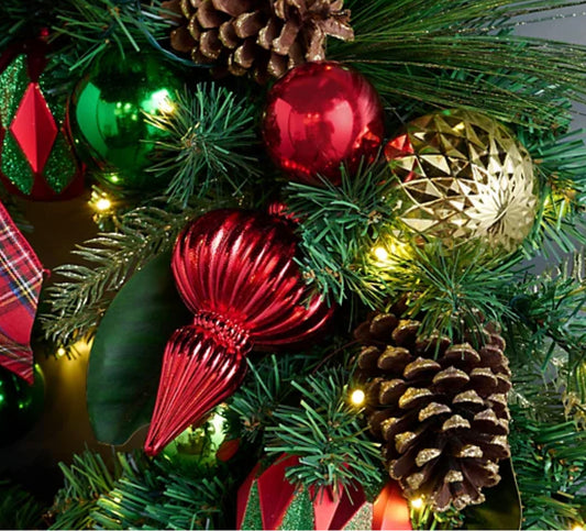 Scott Living 30 Inch Oversized LED Ornament Wreath with Bow Red And Green