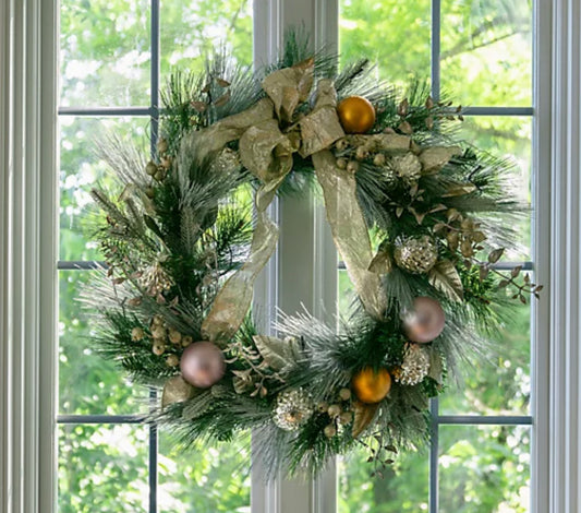 Scott Living 30 Inch Oversized LED Ornament Wreath with Bow Champagne