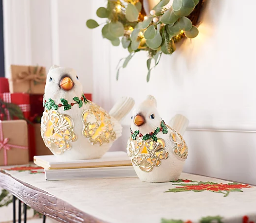 Kringle Express Pearl 2 Resin Cardinals With LED Candle