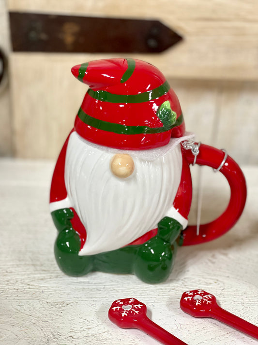 Mr. Christmas Nostalgic Set Of 2 Mugs With Spoons And Lids Gnome