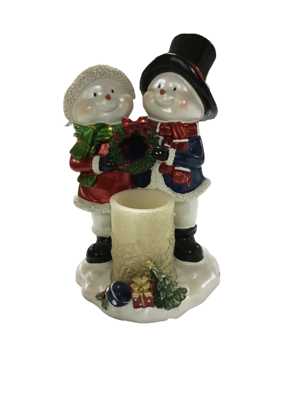 Kringle Express Snowman Couple Candle Holder With LED Candle