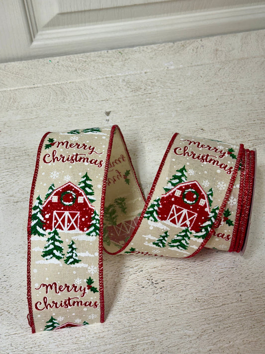 2.5 Inch By 10 Yards Merry Christmas Barn Ribbon