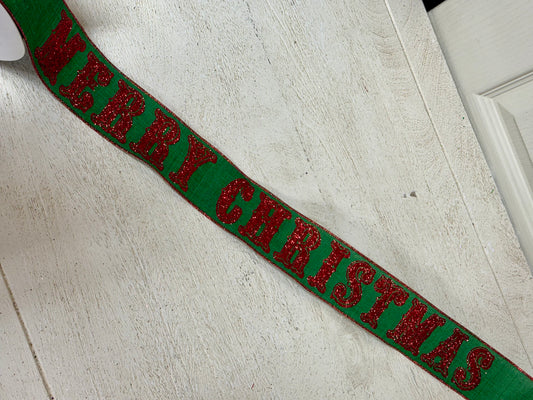 2.5 Inch By 10 Yard Emerald Green And Red Merry Christmas Ribbon