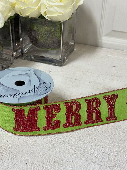 2.5 Inch By 10 Yard Red And Lime Merry Christmas Ribbon