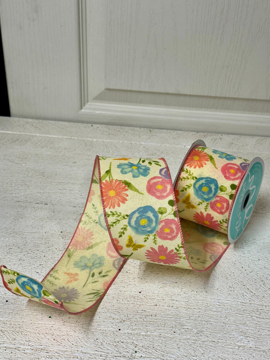 2.5 Inch By 10 Yard Pastel Wildflowers Ribbon