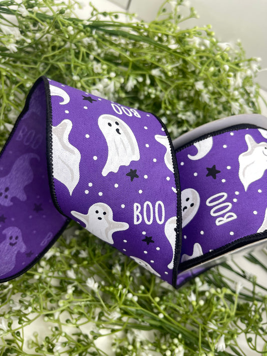 2.5 Inch By 10 Yard Purple Ghost And Boo Ribbon