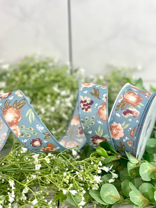 1.5 Inch By 10 Yard Soft Florals On Diagonal Weave Ribbon