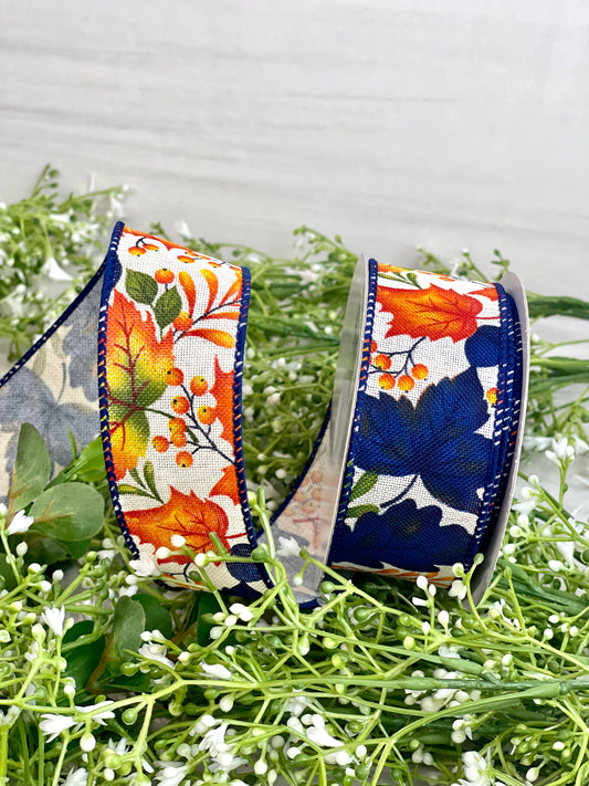 1.5 Inch By 10 Yard Ivory Leaves And Berry Details Ribbon