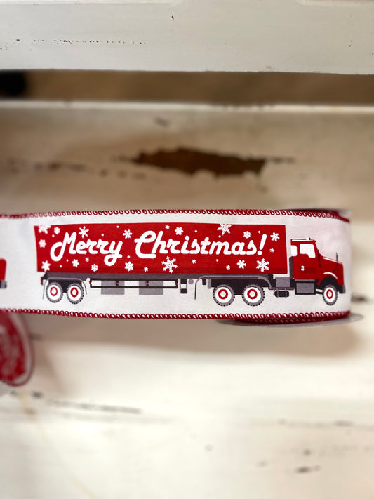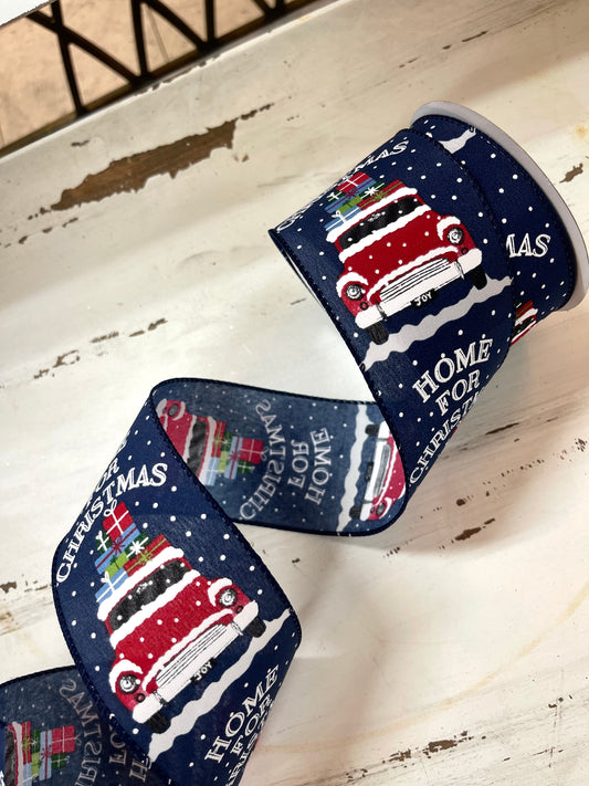 2.5 Inch Navy Home For Christmas Red Truck Ribbon