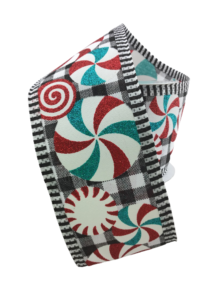 2.5 Inch Peppermint Gingham Stripe Ribbon