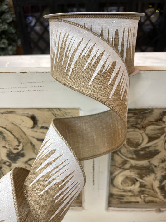 Natural Wired Ribbon With Champagne Glittered Trees 2.5 Inch
