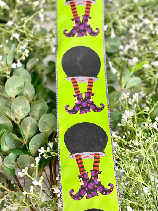 2.5 Inch Lime Green Ribbon With Witch Legs