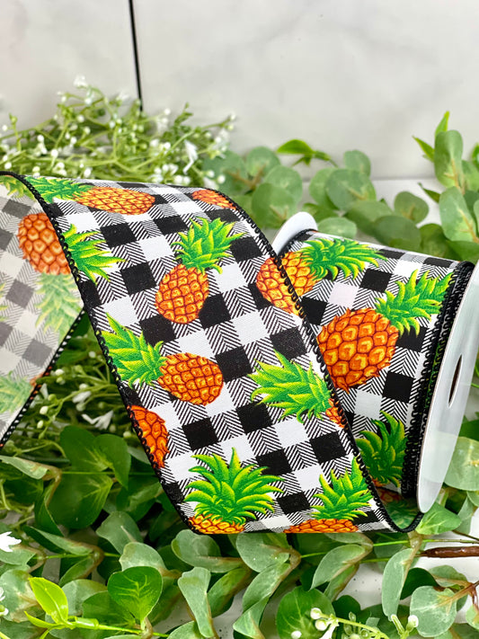2.5 Inch By 10 Yard Black White Buffalo Plaid Pineapple Ribbon