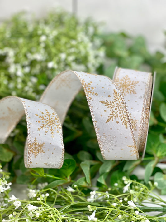 1.5 Inch White Satin With Gold And Silver Snowflake Ribbon