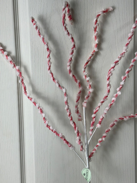 34 Inch Pink And White Chenille Peppermint Twist Spray
