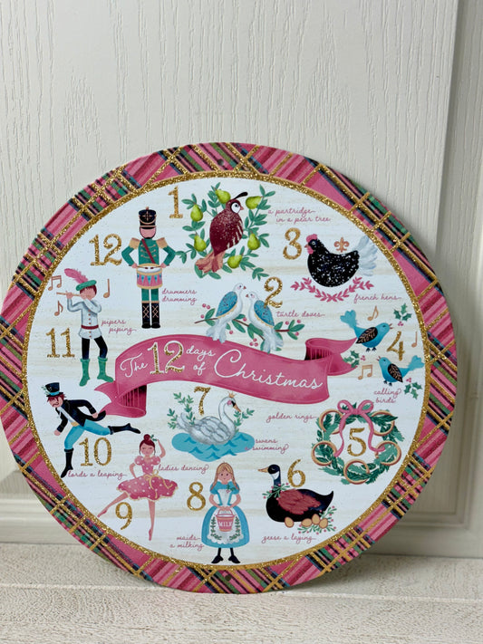 12 Inch Pastel Twelve Days Of Christmas Metal Sign