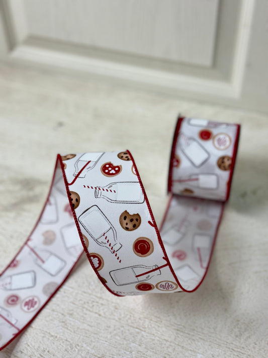 2.5 Inch By 10 Yard Red And White Milk And Cookies Ribbon