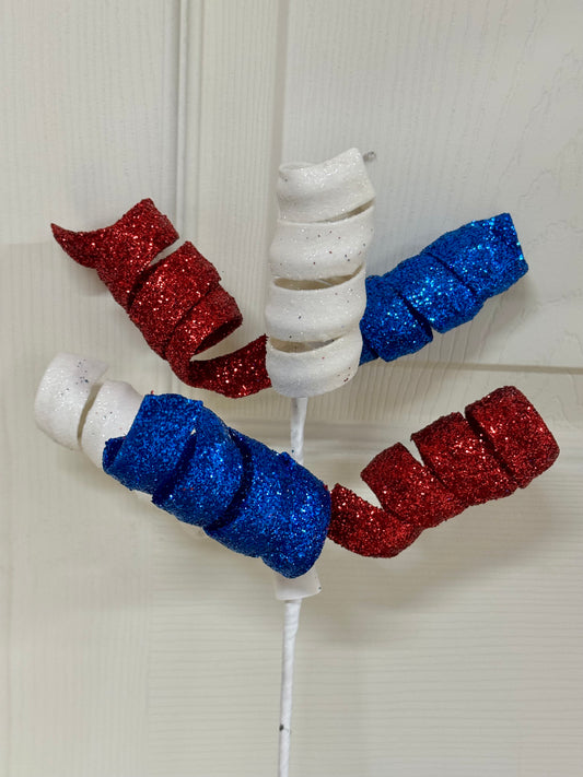 14 Inch Red White Blue Glitter Curl Pick