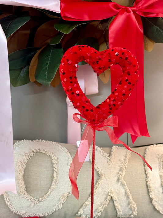 19 Inch Red Sequin Hollow Heart Pick With Bow