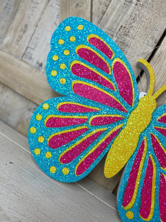 Turquoise Hot Pink Yellow Glitter Butterfly Eva