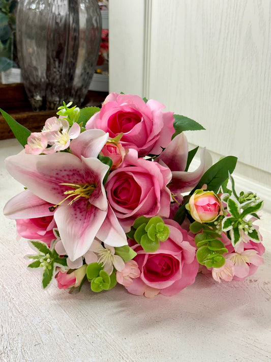 21 Inch Hot Pink Rose Lily Mix Floral Bush
