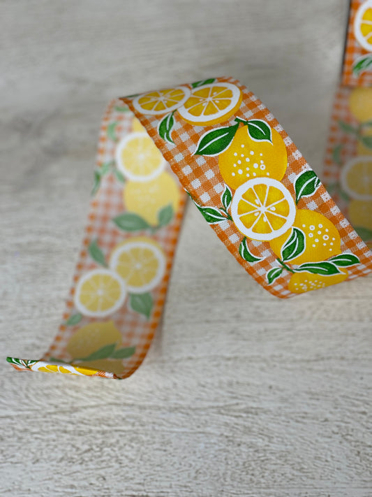 2.5 Inch By 10 Yard Orange Gingham With Lemons Ribbon