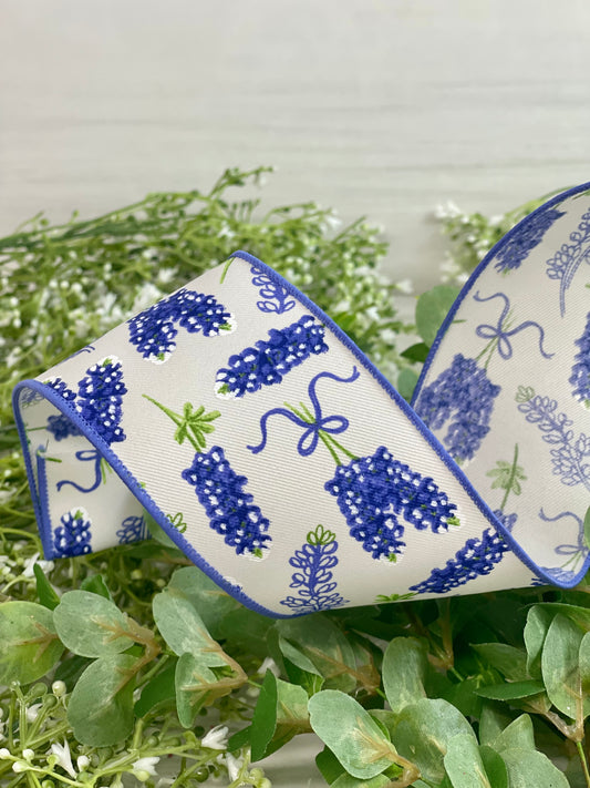 2.5 Inch By 10 Yard Blue Bonnet Pattern Ribbon