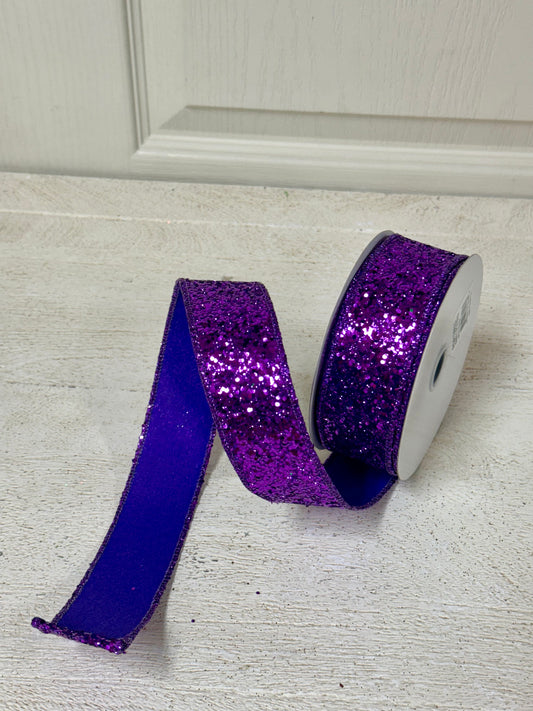 1.5 Inch By 10 Yard Purple Large Glitter Ribbon
