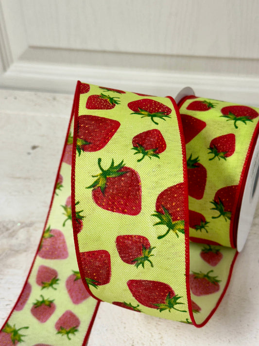 2.5 Inch By 10 Yard Red And Lime Strawberry Ribbon