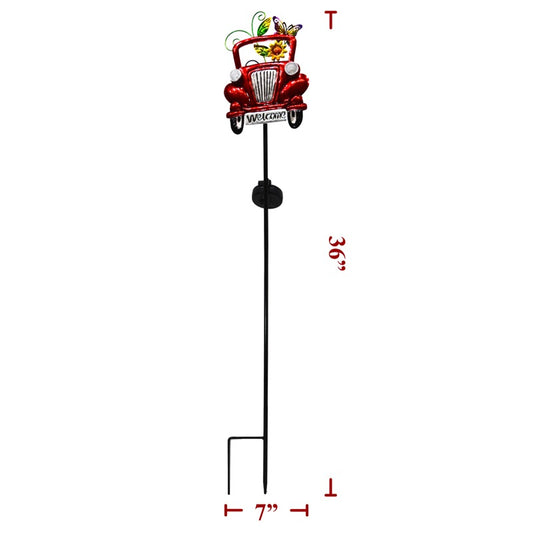 36 Inch Red Metal Truck With Butterfly Yard Stake