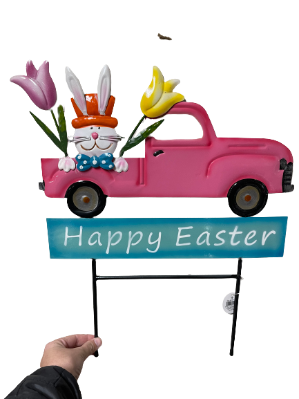 Metal Pink Truck Bunny Yardstake