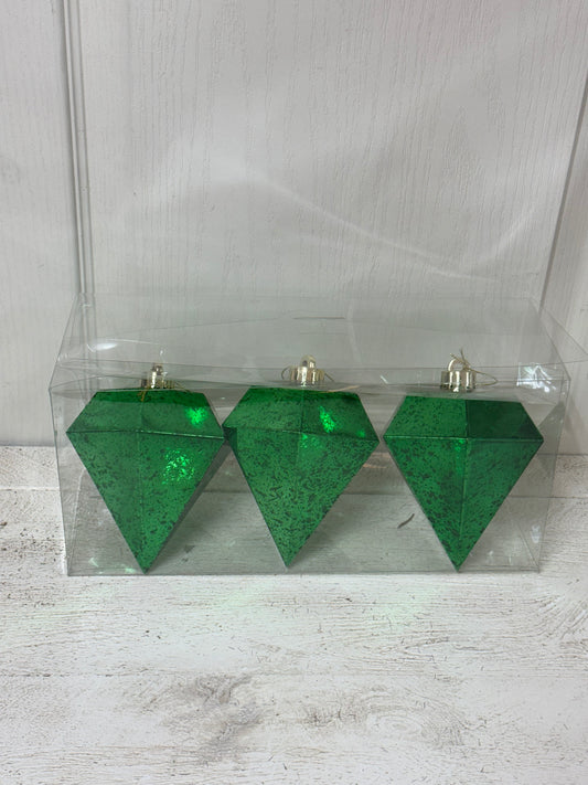 5 Inch Emerald Green Mercury Diamond Ornament Box Of Three