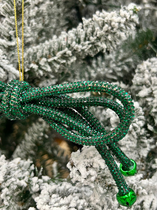 5.5 Inch Green Sparkle Bow With Bells Ornament