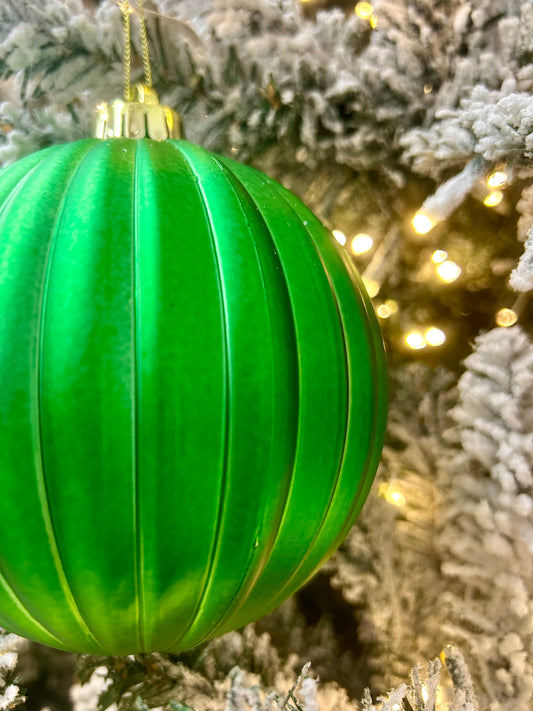 5 Inch Matte Green Vertical Stripe Ball Ornament