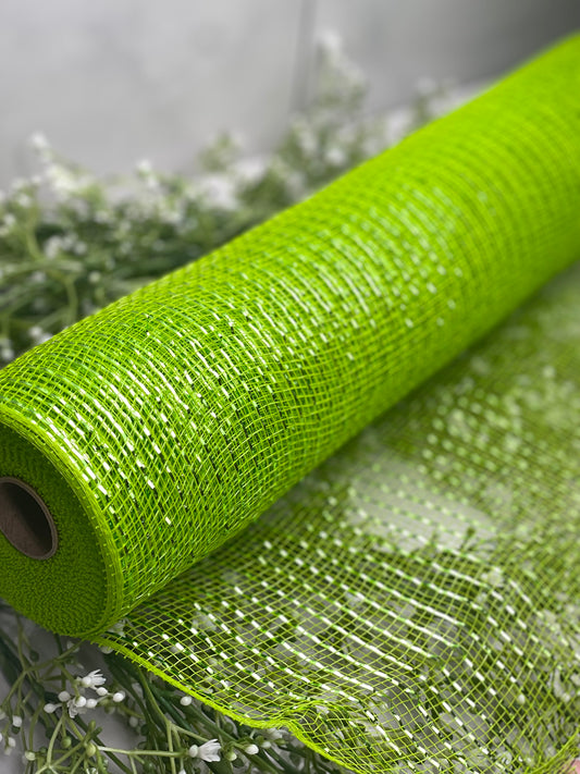 10 Inch by 10 Yard Lime Green Metallic Mesh