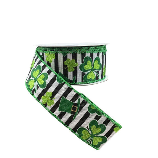 1.5 Inch Saint Patrick Clover Wired Ribbon