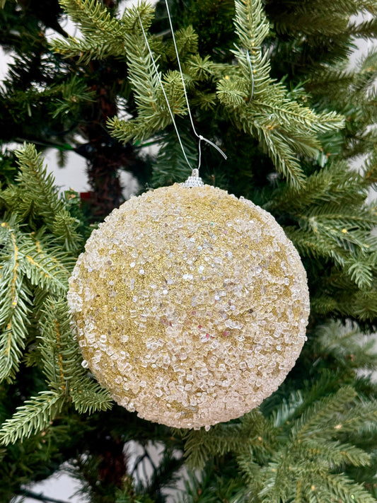 6 Inch Champagne And Gold Glitter Sequin Iced Ornament Ball
