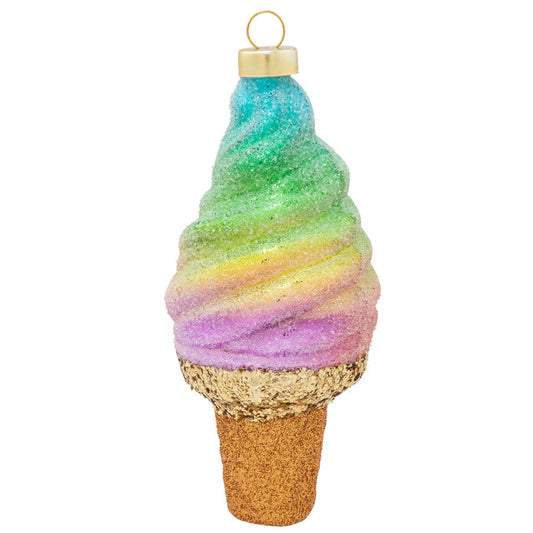 Kat And Annie Rainbow Swirl Ice Cream Cone Glass Ornament