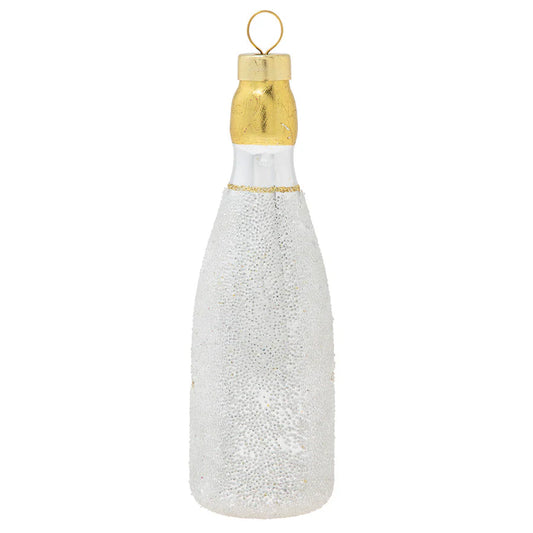 Kat And Annie Silver Luxe Champagne Bottle Glass Ornament