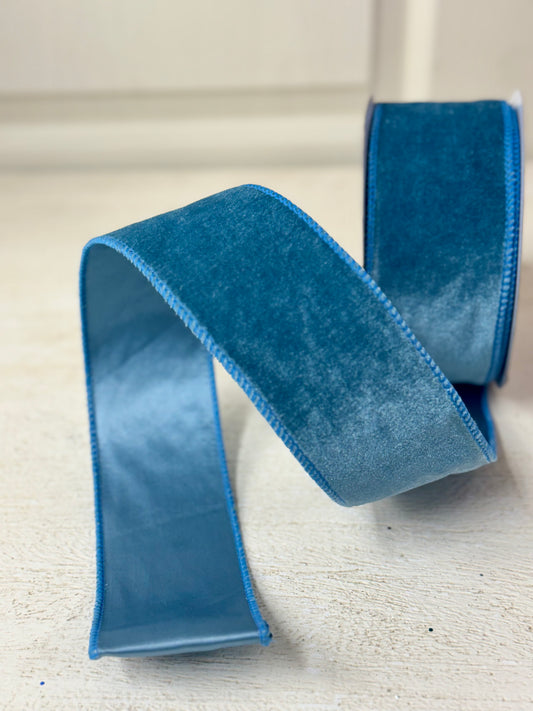 2.5 Inch By 10 Yard Smoke Blue Velvet Ribbon With Satin Backing