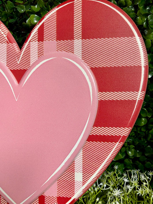 12 Inch Embossed Plaid Heart Metal Sign