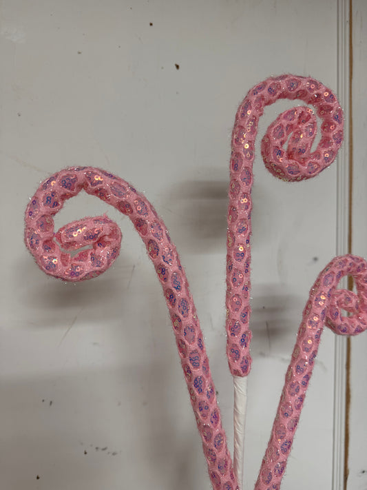 28 Inch Fuchsia Sequin Tinsel Curly Spray