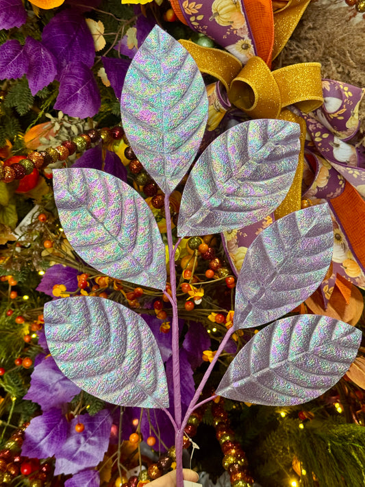 28 Inch Lavender Iridescent Magnolia Leaf Spray